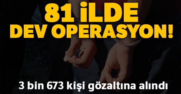 81 ilde 58 bin 528 personel ve 235 dedektör köpeğin katılımıyla eş zamanlı düzenlenen "Türkiye Güven Huzur" uygulamasında adam öldürme, cinsel istismar, çocuk istismarı ve terör örgütlerine üye olmak gibi çeşitli suçlardan aranan 3 bin 673 şahıs gözaltına alındı.