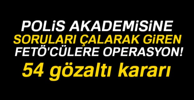 Ankara Cumhuriyet Başsavcılığından yapılan yazılı açıklamada, "2012 yılında yapılan Polis Akademisi giriş sınavında FETÖ silahlı terör örgütü üyelerinin yazılı sınav öncesinde sınav sorularına erişerek sınav sorularını örgüt üyelerine verdiklerinin tespiti üzerine, FETÖ/PDY Silahlı Terör Örgütüne Üye Olma ve Kamu Kurumu Zararına Dolandırıcılık suçlarından, yürütülen soruşturma kapsamında, sınav sorularını önceden ele geçirerek Polis Akademisine yerleşen 54 şüpheli hakkında 33 ilde gözaltı kararı verilmiş olup, gözaltı kararı verilen FETÖ şüphelilerinin işlemleri devam etmektedir" denildi.