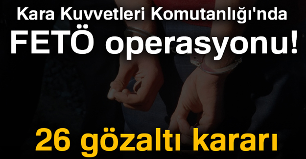 Ankara'da ve 13 ilde başlatılan FETÖ’nün Kara Kuvvetleri Komutanlığı yapısında 26 şahıs hakkında gözaltı kararı alındı.