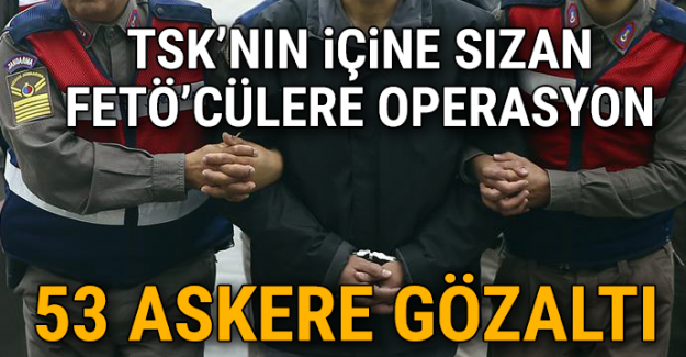 Fetullahçı Terör Örgütü/Paralel Devlet Yapılanması'nın (FETÖ/PDY) askeri mahrem yapılanmasına yönelik Amasya merkezli 12 ilde yürütülen soruşturma kapsamında 53 muvazzaf astsubay hakkında gözaltı kararı verildi, şüphelilerden 20'si gözaltına alındı.