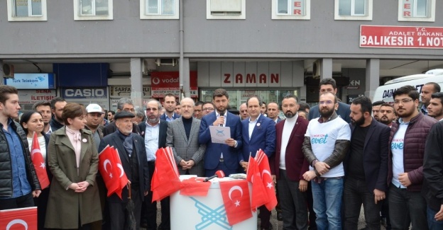 Türkiye Gençlik Vakfı (TÜGVA) Balıkesir İl Temsilciliği tarafından AHP Meydanında yapılan basın açlıklaması yapıldı. TÜGVA üyeleri referandum kampanyasına evet diyerek destek olduklarını söylediler.AHP Meydanında ellerinde Türk bayrakları...