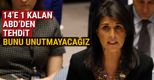 Birleşmiş Milletler Güvenlik Konseyi'ndeki oylamanın ardından Amerika Birleşik Devletleri'nin Birleşmiş Milletler Daimi Temsilcisi Nikki Haley sert konuştu. Tasarının ABD'ye karşı bir hakaret olduğunu söyleyen Haley "Bunu unutmayacağız" dedi.