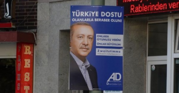 Almanya'da göçmenler tarafından kurulan Alman Demokratlar Birliği (Allianz Deutscher Demokraten / AD-D), dikkat çeken bir seçim afişi ile seçmenlere ulaşmayı tercih etti."TÜRKİYE DOSTU OLANLARLA BERABER OLUN"Cumphurbaşkanı Recep Tayyip Erdoğan'ın "Türkiye düşmanı partilere sakın ha oy vermeyiniz. Türkiye dostu olanlarla beraber olun. küçük partiymiş falan buna da bakmayın, onlara oyunuzu verin, onları büyütelim" sözlerini AD-D, seçim afişlerinde kullandı; konuşmanın çevrisini yaptırarak video hazırlattı.ERDOĞAN AFİŞLERİ ASTILARTürklerin yoğun olarak yaşadığı kentlerden biri olan Duisburg şehrinde sokaklara asılan AD-D seçim afişinde, Erdoğan'ın fotoğrafı ile birlikte "Türkiye dostu olanlarla beraber olun, onlara oyunuzu verin, onları büyütelim" ifadeleri yer aldı. Çifte pasaport vurgusu yapan başka seçim afişleri de sokaklara asan parti, Erdoğan'ın yer aldığı seçim afişini daha çok Türklerin yoğun bulunduğu sokaklara astığı gözlendi.