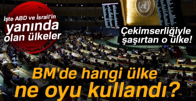 Çekimser oy kullanan ülkeler arasında ise Çekya, Kanada, Arjantin, Fiji, Güney Sudan, Romanya, Polonya, Uganda, Panama, Filipinler, Meksika, Macaristan ülkeleri yer alıyor.BOSNA HERSEK ÇEKİMSER DAVRANDI