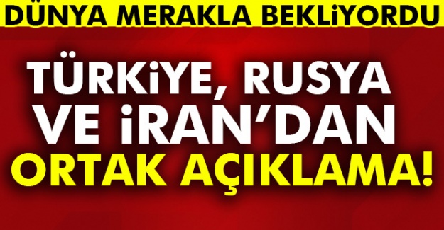 İran, Rusya, Türkiye tarafından 23-24 Ocak 2017 Tarihlerinde Astana'da yapılan Suriye konusundaki uluslararası toplantı hakkında ortak açıklama yapıldı. İran İslam Cumhuriyeti, Rusya Federasyonu ve Türkiye Cumhuriyeti'nin heyetleri, Dışişleri Bakanlarının Moskova'da 20 Aralık 2016 tarihinde yaptıkları ortak açıklamaya ve 2336 sayılı BM Güvenlik Konseyi kararına uygun olarak, Suriye Arap Cumhuriyeti Hükümeti ile silahlı muhalif gruplar arasında görüşmelerin 23-24 Ocak 2017 tarihlerinde Astana'da başlamasını desteklediklerini, BM Genel Sekreteri'nin Suriye Özel Temsilcisi'nin yukarıda bahsekonu görüşmelere katılımını ve kolaylaştırıcılığını memnuniyetle karşılandı. BM Güvenlik Konseyi'nce teyit edildiği şekilde, çok etnili, çok dinli, mezhepsel olmayan, demokratik bir devlet olarak Suriye Arap Cumhuriyeti’nin egemenliğine, bağımsızlığına, birliğine ve toprak bütünlüğüne taahhütlerini yinelediklerini, Suriye ihtilafına askeri bir çözüm olmayacağına ve ihtilafın sadece 2254 sayılı BM Güvenlik Konseyi kararının tamamının uygulanması temelindeki bir siyasi süreçle çözülebileceğine dair inançlarını belirttikleri bildirildi.
