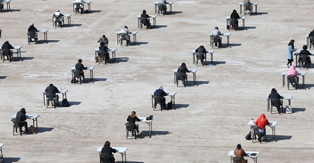 Güney Kore'de bir kamu şirketi, korona virüs tehdidine karşı önlem olarak açık havada sınav düzenledi. Yüzlerce kişinin açık havada girdiği sınavda sosyal mesafe kuralı uygulandı.