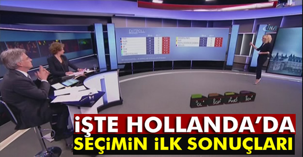 Hollanda’da genel seçimin ilk verilerine göre Başbakan Mark Rutte, parlamentoda 31 sandalye aldı.Hollanda’da halk bugün genel seçimler için sandık başına gitti. Sabah saatlerinde başlayan oy verme işleminin TSİ 23.00 sıralarında bulmasıyla oy sayma işlemine geçildi. Elde edilen ilk sonuçlara göre, Başbakan Mark Rutte, 150 sandalyesi bulunan parlamentoda 31 sandalye, aşırı sağcı Geert Wilders ise 19 sandalye kazanmış görünüyor. Kesin seçimlerin ilerleyen saatlerde açıklanması bekleniyor.