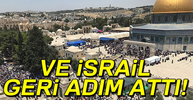 İsrail polisi, sözde güvenlik tedbiri nedeniyle Mescid-i Aksa kapılarına yerleştirdiği metal dedektörleri kaldırdı. İsrail Başbakanlığı tarafından yapılan açıklamada, güvenlik kabinesinin dedektörlerin kaldırılmasını kabul ettiği ancak yerine ileri teknoloji güvenlik sistemi kurulacağı belirtildi. Açıklamada, yeni kurulacak güvenlik sistemi ve görevlendirilecek yeni polis memurları için 28 milyon dolar tahsis edildiği bildirildi.Eski Mescid-i Aksa Müdürü Şeyh Naci Bekirat, girişlerdeki dedektörlerin kaldırılacağını ancak güvenlik kameralarının bırakılacağını belirterek, “Filistinliler,Mescdi-i Aksa’da herhangi bir güvenlik önlemini hiçbir zaman kabul etmeyeceklerini açıkladı. Filistinlilerin güvenlik kameralarını kabul edeceğini sanmıyorum" dedi.Kudüs’teki gerginlik İsrail güçlerinin 14 Temmuz’da 2 İsrail polisinin öldürülmesinin ardından Mescid-i Aksa’yı ibadete kapatmasıyla ve 16 Temmuz’da Mescid-i Aksa girişlerine 9 metal dedektör yerleştirmesiyle yükselmişti.