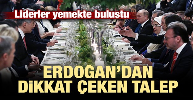 Cumhurbaşkanı Erdoğan’ın helal gıda talebinde bulunduğu, Müslüman bir gözlemci eşliğinde yemekleri hazırlandığı bildirildi. Ayrıca alkol almayacağının bilgisinin verildiği açıklandı.ERDOĞAN İÇİN ÖZEL GARSON TAHSİS EDİLDİ