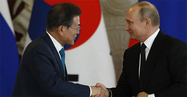 Rusya Devlet Başkanı Vladimir Putin ve Güney Kore Devlet Başkanı Moon Jae-in Rusya’nın başkenti Moskova’da bulunan Kremlin Sarayı’nda bir araya geldi. Kore yarım adasında gerçekleşen gelişmeleri değerlendiren taraflar, görüşmeden sonra iki ayrı bildiri yayınladı. Putin’in bildirisinde, “ABD Başkanı Donald Trump ve Kuzey Kore lideri Kim Jong-un arasında gerçekleşmenin olumlu geçmesi memnuniyetle karşılanmıştır. Bu görüşmenin ardından yapılan nükleer silahlardan arınma anlaşmasının Kore yarımadasına barış getirmesini umuyoruz” ifadeleri yer aldı.Moon tarafından yayınlanan bildiride ise, Rusya’nın ada barışına olan katkısı vurgulanarak, “Biz Kore yarımadası ve Avrasya’da barış ve refah için iletişim ve işbirliğinin artmasını memnuniyetle karşılıyoruz. Güney ve Kuzey Kore’nin barış sürecine Rusya büyük destek verdi” denildi.Yapılan görüşmede, Kore yarım adasının durumunun yanı sıra Rusya ve Güney Kore arasında demiryolları inşası, enerji, gaz boru hatları gibi birçok konularda ikili anlaşmaların yapıldığı duyuruldu.