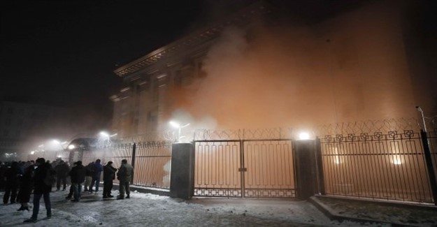 Ukrayna’nın başkenti Kiev’de Rusya Büyükelçiliği önünde toplanan yüzlerce kişi Moskova’yı protesto etti. Göstericilerden bazıları molotof kokteyli atarken, büyükelçiliğe ait bir araç ateşe verildi.Lviv ve Harkiv kentlerinde de Rusya konsolosluklarının önünde radikal milliyetçiler lastik yakarak eylem yaptı.