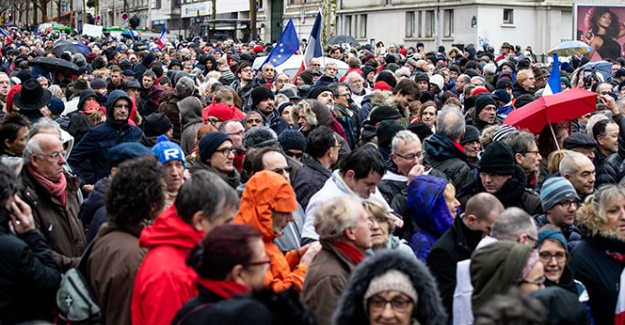 rn rnFransa’da hükumete karşı gerçekleştirilen “Sarı Yelekliler” protestolarını kınayan binlerce kişi “Kırmızı Fularlılar” adıyla Paris’te sokaklara döküldü. Kırmızı Fularlılar, cumhuriyeti korumak ve şiddete karşı durmak için slogan attı.