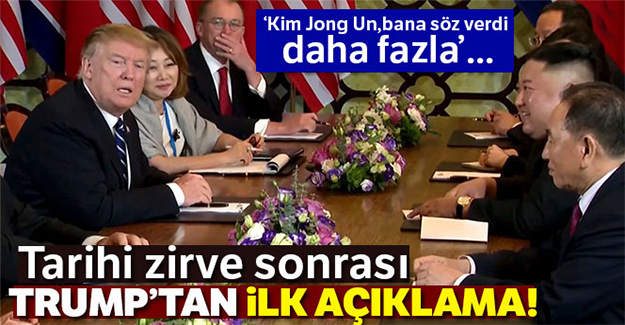ABD Başkanı Donald Trump: “İstediğimiz her şeyi yapmadıkları için anlaşma çıkmadı. İstediğimiz noktaya gelineceğini düşünüyorum. "Kim Jong Un bana daha fazla nükleer test yapmama sözü verdi" dedi.