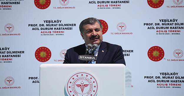 "(Prof. Dr. Murat Dilmener) Binlerce öğrenci yetiştiren bir akademisyen, yoksulların doktoru, hocaların hocası. Her talebesi benim sözlerime çok şey ekleyebilir. Benim ondan aldığım duygu hep şu olmuştur: 'İnsanlık, merhamet üzerine kuruludur.' Tıp eğitimimizde iz bırakan, bize yön veren efsane hocalarımızdan biriydi. Hekimliği bir teknik meslek olarak değil, bir sanat olarak içselleştirmemizde önder olmuştu. Hekimliğin sadece akademik bilgi ile olmadığını, diğergam olmayı, hastanın derdine ortak olmayı, hastayla hemhal olmayı davranışlarıyla gösterirdi. Ödev ahlakına sahip bir insandı. İnsan sağlığı onun ahlaki ödev alanıydı.Öğrenciliğimizden başlayarak asistanlığımızda ve meslek hayatımızın her aşamasında üzerimize emeği olan bir hocamızdı. 70'li, 80'li yılların klinik pratiğinde yetişmiş, bugünkü teknolojiyle değil, detaylı muayene ve anamnez ile teşhis koyacak bilgi ve beceriye sahip doktorların son temsilcilerindendi. Kaderin bir pandemi esnasında, böyle bir dahiliye hocasını, bir enfeksiyon hocasını tedavi ettiği hastalar arasına koyması ve bir enfeksiyonla, Kovid-19 nedeniyle yitirmemiz, bizim için unutulmayacak bir derstir. Bugün açılışını yaptığımız acil durum hastanesine onun adını vererek bu dersi ölümsüzleştirmek istiyoruz. Buralarda görev alacak doktor arkadaşlarımın, tüm sağlık çalışanlarımın, onun adına layık bir anlayışla hizmet bayrağını taşıyacağından şüphe duymuyorum. Genç meslektaşlarıma sadece modern binalar, son teknoloji cihazlar değil, hocalarımızdan aldığımız kültür, ilim ve irfanı; insan sevgisini, insana hizmet şuurunu da bıraktığımıza inanıyorum.""NORMALLEŞME MÜCADELEDEN GERİ ADIM ATMAK ANLAMINA GELMEMELİDİR"Bakan Koca, yeni tip koronavirüs salgını konusunda, vermek istediği mesajlar olduğunu söyleyerek, "Risk ortadan kalkmış değil. Normalleşme, mücadeleden geri adım atmak anlamına gelmemelidir. El hijyenine her zamankinden fazla önem vermeliyiz. Maske ve mesafe kuralının her ikisine birlikte uymalıyız. Çok değerli insanları bizden alan bu salgını Allah'ın izniyle hep birlikte yeneceğiz." şeklinde konuştu.Konuşmaların ardından Cumhurbaşkanı Erdoğan ile Sağlık Bakanı Koca ve Ulaştırma ve Altyapı Bakanı Karaismailoğlu'nun da aralarında bulunduğu katılımcılar, kurdeleyi keserek hastaneyi açtı.Erdoğan ve beraberindekiler daha sonra hastaneyi gezdi.