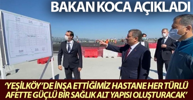Bakan Fahrettin Koca burada da yetkililerden bilgi aldı. Yine sosyal medya üzerinden yaptığı açıklamada, "İstanbul'u her iki yakasıyla afetlere hazır hale getireceğiz. Yeşilköy'de inşa ettiğimiz çok amaçlı hastane; salgın, deprem ve her türlü afette güçlü bir sağlık alt yapısı oluşturacak. Her odası yoğun bakıma dönüştürülebilen hastanemiz toplamda 1008 yataklı" ifadelerini kullandı.