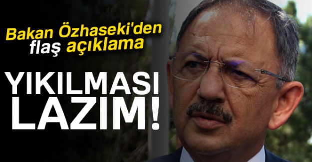 Çevre ve Şehircilik Bakanı Mehmet Özhaseki, "1999 yönetmeliği öncesinde Türkiye'de yapılan yaklaşık 7,5 milyon civarında yapı stoğu var. Bunların büyük çoğunluğu depreme dayanıksız ve yaşam için elverişsiz. Bunların yıkılması lazım" dedi.