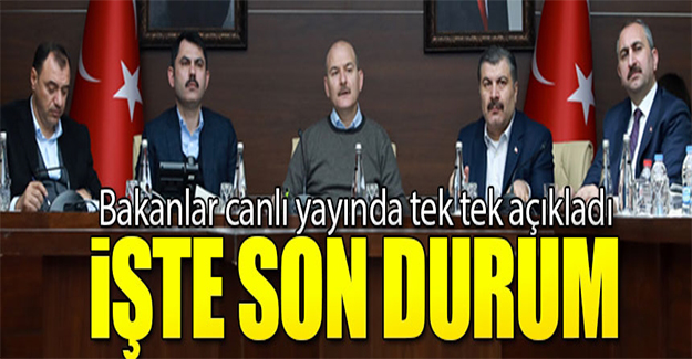 Deprem bölgesi olan Elazığ'da bulunan İçişleri Bakanı Süleyman Soylu, Sağlık Bakanı Fahrettin Koca, Çevre ve Şehircilik Bakanı Murat Kurum ve Adalet Bakanı Abdülhamit Gül, ortak açıklamalarda bulundu.