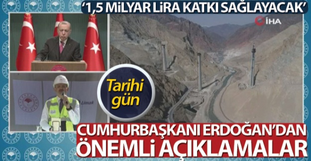 Cumhurbaşkanı Recep Tayyip Erdoğan, Yusufeli Barajı 3 Milyonuncu Beton Dökümü, Bayburt Demirözü Sulaması, Rize Merkez ve Güneysu İlçeleri ve Taşlıdere Vadisi Islahı 5. Kısım Hizmete Alma Töreni'ne video konferans sistemi ile bağlandı.Cumhurbaşkanlığı Külliyesinden tören alanına bağlanan Cumhurbaşkanı Erdoğan, Yusufeli Barajı'nın ekonomiye yılda 1,5 milyar lira katkı sağlayacağını açıkladı.