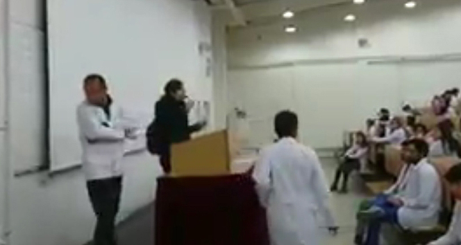 İddiaya göre, okulda öğrenim gören Tuana U., Emine A., Kutlay B. ve Şehmuz B., öğrencilerin ders işlediği bir salona girdi. Öğrencilerden Tuana U., akademisyenlerin gözü önünde kürsüye çıktı ve siyasi içerikli propaganda yaptı. Salondaki hiçbir görevli de olaya müdahale etmedi. Sosyal medyaya yüklenen görüntüler büyük tepki topladı.REKTÖRDEN AÇIKLAMAOlayla ilgili konuşan Ege Üniversitesi Rektörü Prof. Dr. Cüneyt Hoşcoşkun, üniversitenin bir eğitim kurumu olduğunu, hiçbir hukuksuzluğa izin vermeyeceklerini ifade etti. Olayla ilgi Bornova Cumhuriyet Savcılığına suç duyurusunda bulunduklarını dile getiren Rektör Hoşcoşkun, üniversite yönetimi olarak da bir soruşturma başlattıklarını bildirdi.