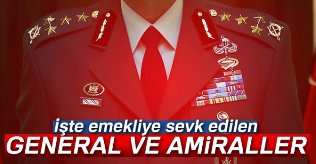 YAŞ’ta alınan kararlara göre emekliye sevk edilen general ve amirallerin listesi şöyle:“Kara Kuvvetleri Komutanlığı; Korgeneraller Tahir Bekiroğlu, Ömer Paç, Yılmaz Uyar, Mehmet Faruk Şengün. Tümgeneraller Şenol Alparslan, İzzet Çetingöz, Mehmet Okkan, Gürsel Öztürk, Atilla Şirin, Ömer Şevki Gençtürk, Rafet Sevinç Şaşmaz, Abdullah Arslan. Tuğgeneraller Rıza Çağatay Erdoğan, Mesut Bedri Usta, İlhan Kırtıl, Erhan Sipahioğlu, Ertuğrulgazi Özkürkçü, Adnan Baksı, Ufuk Ekinci, Bülent Tuğrul. Deniz Kuvvetleri Komutanlığı; Koramiraller Hasan Uşaklıoğlu, Serdar Dülger, Tümamiral Hayati Bilgiç (yaş haddi), Tuğamiral Ahmet Zeki Liman. Hava Kuvvetleri Komutanlığı; Tuğgeneraller Sargun Göktün ve İhsan Özdamar.”