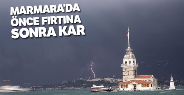 Meteoroloji, Marmara Denizi'nde fırtına beklendiğini duyurdu. Akşam saatlerinde Trakya; gece ise İstanbul, Kocaeli, Sakarya ve Yalova çevrelerinde ise kar var.