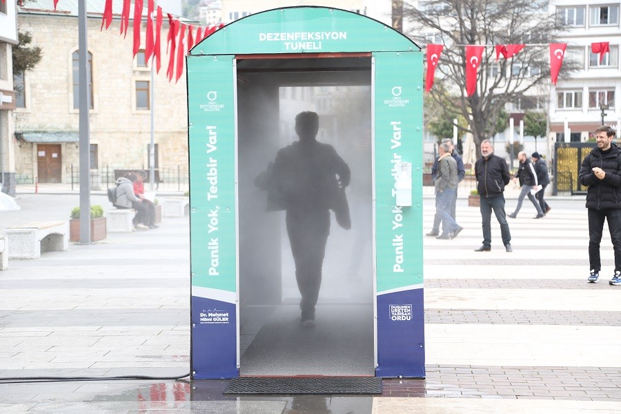 Özel bir çalışma neticesinde ürünün ortaya çıkarıldığını dile getiren Ordu Büyükşehir Belediyesi Çevre Koruma ve Kontrol Dairesi Başkanı Sefa Okutucu, “Dezenfekte tüneli, Büyükşehir Belediyemizin sıkı bir çalışması neticesinde hayata geçirdiğimiz tedbir amaçlı bir uygulamadır. Hem fiziksel hijyen hem de bu anlamda kültürel mücadeleyi sağlamak adına bu uygulamayı yaptık. Öncelikle Büyükşehir Belediye Başkanımız Dr. Mehmet Hilmi Güler'in bizlere açmış olduğu vizyon ve ufuk çerçevesinde düşünüp, çalışıp ve ürettiğimiz uygulamanın haklı gururunu yaşamaktayız. Sistemli olarak tünelimizi geliştirmeye devam ediyoruz. Bu sistem Gebze Teknik Üniversitesi Rektör Yardımcısı Prof. Dr. Bülent Keskinler ile yapmış olduğumuz bir solüsyon çalışması neticesinde ortaya çıktı. Bu solüsyon insan sağlığını etkileyecek herhangi bir madde içermemektedir. Buradaki amaç hijyen ve dezenfeksiyonu sağlayabilmek yani kontamine bir alan oluşturmak. Sistemimiz 8 adet nozul ve özel hazırlanmış bir çözeltiyle çalışmaktadır. Tamamıyla sensörlü bir uygulama olup insanların kıyafetleri 360 derece dezenfekte edilmektedir” diye konuştu.Öte yandan dezenfekte tünelini kullanan vatandaşlar memnuniyetleri dile getirerek Ordu Büyükşehir Belediyesine teşekkür etti.