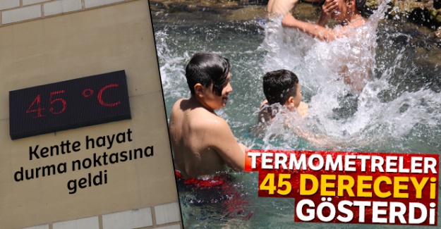 Diyarbakır'da etkisini artıran kavurucu sıcaklar günlük yaşamı olumsuz etkilerken, Kurban Bayramının üçüncü gününde öğle saatlerinden sonra kent genelinde termometreler 45 dereceyi gösterdi. Sıcaktan bunalan vatandaşlar gölgeliklere akın ederek serinlemeye çalışırken, çocuklar ise anne ve babalarının kontrolünde Sur ilçesinde bulunan Anzele Parkının içerisindeki süs havuzunda serinlemenin keyfini çıkardı.