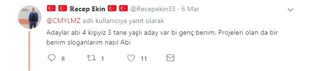Bunun üzerine muhtar adayı Ekin, Cem Yılmaz'a "Adaylar abi 4 kişiyiz 3 tane yaşlı aday var, bir genç benim. Projeleri olan da bir benim sloganlarım nasıl abi?" dedi.