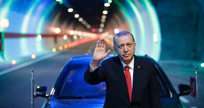 “Birileri çıkıyor bol keseden atıyor”“İşte biz bunları yaptık. Birileri de çıkıyor bol bol atıyor. Bol keseden atıyorlar” diyen Erdoğan “Ama biz 16 yıldır hamdolsun atmadık. İşte Türkiye 1950’lere kadar da böyle geldi. Rahmetli Menderes ve arkadaşlarının başlattıkları kalkınma hamlesi 1960 yılında tek parti dönemi artığı bir parti tarafından kesilmiştir; kimdi onlar Cumhuriyet Halk Partisi. Bunlar değil miydi Menderes’i idame götüren. Ondan sonra demokrasi diyorlar ne demokrasisi? Demokrasi ile mi bunları idam ettin. Ama inşallah artık bunlar bu arzularına nail olamayacaklar” şeklinde konuştu.Dolu yağışı altında konuşan Erdoğan, “Şimdi bu dolu yağışı altında sizi görünce sizin koşmanızı görünce yanımda arkadaşıma dedim ki “Allahıma hamdolsun, benim hanım kardeşlerim bu doluya rağmen böyle buraya geldikten sonra bizi de bu hanım kardeşlerimize hizmetkar kıldığı için Rabbime ne kadar hamd etsem azdır. İnşallah sizlerle yapacağımız daha çok şey var. Biz 16 yılda yaklaşık 20 bin km bölünmüş yol yaptık” diye konuştu.Bu yılın ilk çeyreğinde Türkiye’nin yüzde 7.4 büyüdüğünü hatırlatan Erdoğan “Ancak bu beyefendiler bunu hazmedemedi. Cebinize bir şey girdimi diyor. Ey zavallı. Aha işte cebine giren. Bu Ovit tüneli. Bu senin cebine girmez, seni kendi cebine sokar. Böyle bir büyüme bu” dedi.Konuşmasının ardından Erdoğan, beraberindeki Ulaştırma Bakanı Ahmet Arslan, Gençlik ve Spor Bakanı Osman Aşkın Bak ve TBMM Başkanı İsmail Kahraman ile birlikte kendi kullandığı makam aracı ile tünel içinde yolculuk yaptı. Erdoğan, fotoğraf çekiminin ardından bölgeden helikopterle Rize’ye hareket etti.