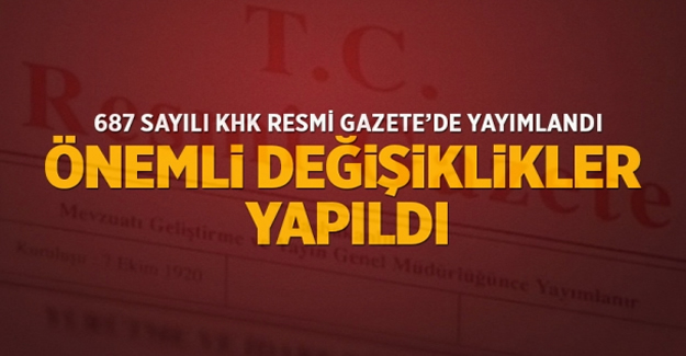 687 Sayılı KHK Resmi Gazetede yayımlandı