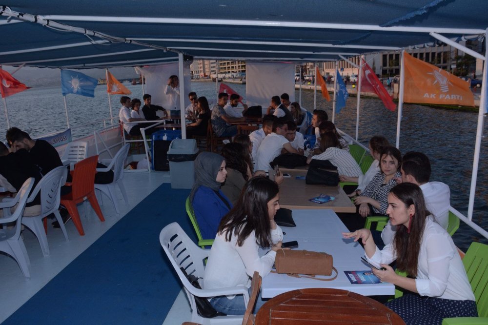 AK Parti İzmir İl Gençlik Kolları Başkanlığı, 24 Haziran seçim çalışmaları kapsamında ‘İlk Oyum İlk Sohbet’ adı altında körfez turları düzenlemeye başladı. Bu seçimlerde ilk kez oy kullanacak gençleri hedef alan proje kapsamında İzmirli gençler AK Partinin İzmir Milletvekili adayları ile bir araya geliyor. AK Parti İzmir İl Gençlik Kolları Başkanı Eyüp Kadir İnan, AK Partinin gençleri en iyi anlayan, en fazla önem veren ve bu önemi de hizmet ve yatırımlarla ortaya koyan parti olduğunu belirterek, projenin hedeflerini şöyle anlattı:“AK Parti kurulduğu günden beri gençlere en yakın duran partidir. Bunun en yakın örneği 24 Haziran’da 18 yaşındaki gençlerimize seçilme hakkının tanınmasıdır. Genç kardeşlerimiz 18 yaşından itibaren artık sadece seçmen değil, isterlerse milletvekili olup, Türkiye Büyük Millet Meclisinde halkımızı da temsil edebilecekler. Ancak AK Parti’nin gençlere yönelik hizmetleri bununla sınırlı değil. Daha iktidara gelir gelmez, gençliğin en büyük sorunu olan eğitime el attı. Yüzlerce modern yurt binası yaptı, var olan yurtların hizmet kalitesini arttırdı. Üniversite öğrencilerine yönelik burs ve kredi miktarlarını 3-4 kat arttırdı. Gençlik şuraları düzenledi.