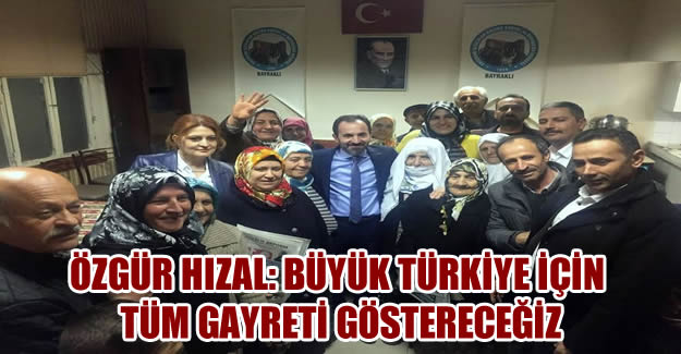 Seçim çalışmaları kapsamında ilçe teşkilatının çalışma alanlarına değinen Hızal, anayasa değişikliği referandum oylamasının bu zamana kadar yapılan en önemli seçim olduğunu ifade ederek, “Türkiye'mizin geleceği açısından son derece önemli olan referandum sürecine girdik. Referandum sistem değişikliği olarak bu zamana kadar yapılan tüm seçimlerden çok daha önemlidir. Seçim çalışmalarımıza başladığımız bugünlerde ilçelerimizde Seçim Koordinasyon Merkezlerimizi kurduk. Referandum çalışmalarımıza başladık. 23 mahallemizde esnaf, ev ve dernek ziyaretlerimizi yapıyoruz. Referandum sürecinde teşkilat çalışmalarımızı; özelikle mahalle teşkilatlarımızı oluşturduk. Sandık kurullarımızın oluşturulması, seçmen güncellemelerimizin yapılması da bitmek üzere. sandık çalışmaları konusunda titizlikle hareket ettik. Değerli mahalle teşkilatlarımızın yapmış olduğu özverili çalışmalardan dolayı tebrik ediyorum. ” açıklamasında bulundu.HIZAL: BÜYÜK TÜRKİYE İÇİN TÜM GAYRETİ GÖSTERECEĞİZAK Parti’nin bir dava partisi olduğu vurgusunu yapan Hızal, “Büyük Türkiye için tüm gayreti göstereceğiz” diyerek ilçe teşkilatının bugün olduğu gibi bundan sonra da uyumlu bir şekilde çalışacağının altını çizdi. Cumhurbaşkanı Recep Tayyip Erdoğan’ın Kurucu Genel Başkanı olduğu AK Parti’de siyaset yapmanın sorumluluğuna değinen Hızal, “AK Parti bir dava partisidir, milletin geleceğini inşa etme partisidir. Dava büyüktür ve onun büyüklüğü karşısında bizim adımızın, unvanlarımızın, mevkilerimizin hiçbir önemi yoktur. Dahası, davası olmak çoğu zaman bir şeylere sahip olmaktan ziyade, bir şeylerden feragat etmeyi gerektirir. Bu davada amacımız, teşkilatımızın her kademesinde arkadaşlarımızla tam bir uyum içinde çalışarak büyük Türkiye hedeflerine ulaşmak için tüm gayreti göstermektir. Teşkilatlarda uyum esastır, uyum olmayan teşkilatlarda her türlü sorunu yaşarız. Bayraklı teşkilatı olarak koyduğumuz hedeflere, yakaladığımız bu uyum ile ulaşacağımıza inanıyorum. Bizler Recep Tayyip Erdoğan'ın kurduğu bir partide siyaset yapıyoruz. Onun kurduğu partide siyaset yapmak sorumluluk ve kendisinin çalışmalarına ayak uyduracak bir performansla çalışmamız gerektiriyor” dedi.