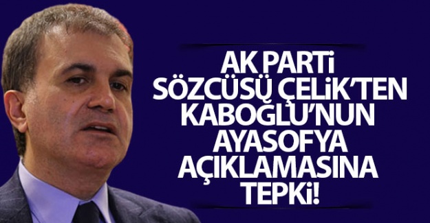 AK Parti Sözcüsü Çelik,"(Kaboğlu'nun Ayasofya açıklaması) Bu zihniyeti şiddetle kınıyoruz. CHP derhal gereğini yapmalıdır. Her türlü toksik siyasetin aynı anlayıştan tezahür etmesi kimseyi şaşırtmıyor. Ama bunların artık ülkemizle rekabet içinde olan başka devletler için gerekçe üretmesi tahammül edilmez bir noktaya geldi."