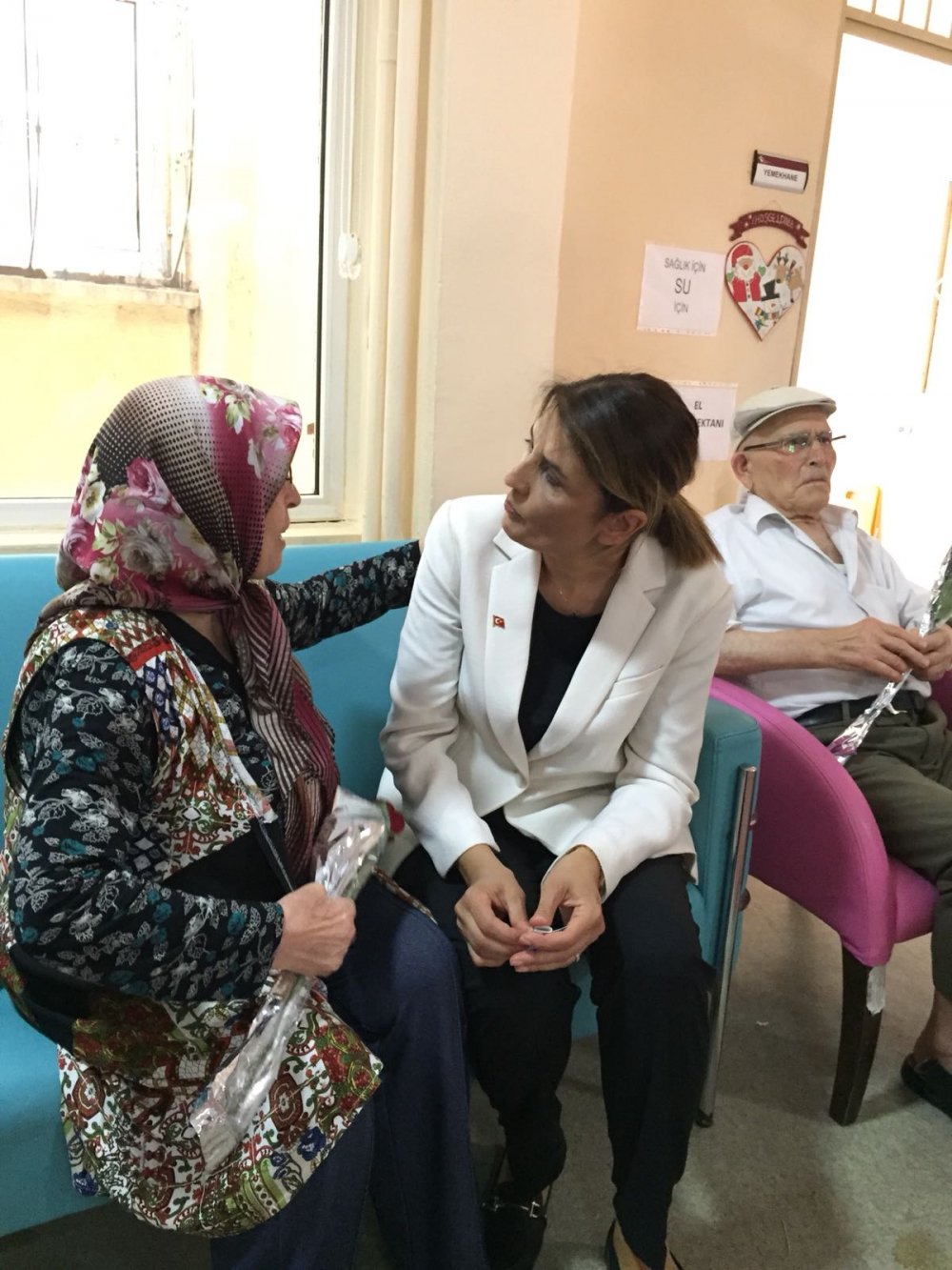 AK Parti İzmir 2’inci Bölge Milletvekili Adayı Mimar Melek Eroğlu, Bornova’da bulunan Türkan Özilhan Devlet Hastanesi’nde tedavi gören vatandaşları ve Bornova Nevvar Salih İşgören Huzurevi sakinlerini ziyaret etti. Hastanede tedavi gören vatandaşlara acil şifalar dileyen Eroğlu, hastane yetkililerinden bilgi aldı, kolaylıklar diledi. Buradan Huzurevi’ne geçen ve ellerini öptüğü yaşlı sakinlerle sohbet eden Mimar Melek Eroğlu, büyüklerin hakkının ödenemeyeceğini dile getirdi. Herkesin hangi yaşta olursa olsun bir yaşlı adayı olduğunu sözlerine ekleyen Eroğlu, “Annelerimizin, anneannelerimizin, babalarımızın büyükbabalarımızın kısacası hepimizin üzerinde emekleri olan, bizleri bugünlere getiren büyüklerimiz için huzur ve mutluluk verecek çalışmalara devam edeceğiz. Onların tecrübelerinden her zaman faydalanıyoruz, bunu sürdüreceğiz. Yaşlısından gencine, çalışanından öğrencisine kadar her yaştan insanımızın geleceğe daha çok umutla bakabilmesi için projeler üreten AK Parti, yeni dönemde de yaşlılarımızı ve emeklilerimizin hayatını kolaylaştıracak birçok hizmete önderlik edecek.”