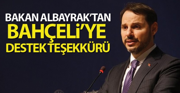 Hazine ve Maliye Bakanı Berat Albayrak, Milliyetçi Hareket Partisi Genel Başkanı Devlet Bahçeli'ye ekonomiye ilişkin verdiği destek mesajlarından dolayı teşekkür etti.
