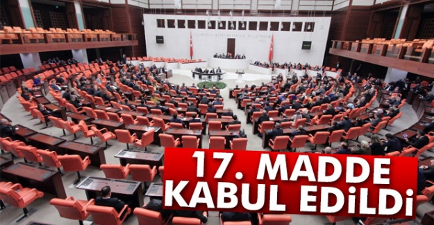 Anayasa değişiklik teklifinin 17. maddesi 342 oyla kabul edildi.Anayasa değişiklik teklifi görüşmeleri devam ediyor. 17. maddede 484 milletvekili oy kullandı. Oylar: 342 kabul, 135 ret, 2 çekimser, 3 boş ve 2 geçersiz.