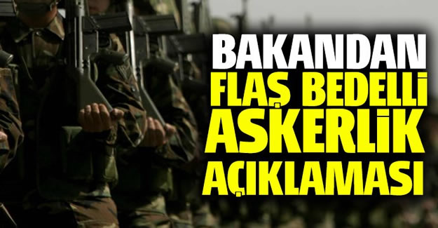 Milli Savunma Bakanı Fikri Işık binlerce gencin merakla beklediği 'Bedelli askerlik' konusuyla ilgili açıklama yaptı.Bakan Işık yaptığı açıklamada 'Terörle hem sınırlarımız içinde hem de sınırlarımız dışında azim ve kararlılıkla mücadele ederken böyle bir uygulamanın gündemimizde olması beklenemez. Şu an gündemimizde böyle bir şey yok zaten Genelkurmay Başkanlığımızın da böyle bir talebi yok. 'dedi. Milliyet