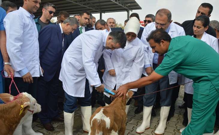 Bakan Pakdemirli, Malatya'nın Yazıhan ilçesinde 502 düve üretim merkezinin açılış törenine katıldı. Burada tesisi gezen ve yetkililerden bilgiler alan Bakan Pakdemirli, 2 buzağının da kulaklarına küpelerini kendi taktı.Ziyaretin ardından gazetecilere açıklamalarda bulunan Bakan Pakdemirli, Türkiye'nin kendi kendine yeterliliğini sağlamayı amaçladıklarını ifade ederek bu noktada da destek ve teşviklere devam edeceklerini söyledi. Bakanlık olarak 2,5 milyon liraya yakın bulundukları tesise katkı sağladıklarını anımsatan Pakdemirli, katkıların süreceğini söyledi. Et üreticilerinin uzun süredir sıkıntılarının olduğunu da kaydeden Pakdemirli, "26 lira olan ithal menşeili karkas et fiyatlarını Et ve Süt Kurumu olarak bugünden itibaren 28 lira olarak uygulayacağımızı açıklamak istiyorum. Yerliyi de her zaman kayırıyoruz biliyorsunuz. Yerlideki 28 lira olan karkas et fiyatımızı da bugünden itibaren 29 lira olarak uygulamaya alıyoruz. Hayırlı, uğurlu olsun" diyerek yeni müjdeyi Malatya'dan duyurdu.