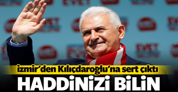 CHP Lideri Kemal Kılıçdaroğlu’nu eleştiren Başbakan Binali Yıldırım, şunları söyledi:“Sayın Kılıçdaroğlu sadece hayır diyor. Bunların bildiği bir şey var; oda istemezük. Yol yaptırmam, havaalanı yaptırmam, hızlı tren yaptırmam, Marmaray’ı yaptırmam, Konak Tüneli'ni yaptırmam. İstanbul-İzmir otoyolunu yaptırmam. Bunların ağzından yaptırmamdan başka bir söz duydunuz mu İzmir. Halk oylaması kampanyasında söylemedikleri tek bir yalan, iftira kalmadı. Şimdi başladılar, bir siyasi parti temsilcisine yakışmayacak tehditler savuruyorlar. Bu aziz milleti tehdit etmeye sizin haddiniz de, hakkınız da yok. Haddinizi bilin. Yunanı denizden döktüğümüz gibi onlar da evet diyenleri denize dökecekmiş. Hayır çıkarsa milleti denize dökmüş gibi sevinecekler. Yazıklar olsun bunlara. Bu kadar seviyesiz bu siyaseti hak etmiyoruz. CHP’ye gönül veren kardeşlerimiz de hak etmiyor. Sayın Kılıçdaroğlu Yenikapı’da başka şeyler söylüyor, FETÖ’nün ağzıyla konuşmaya başladı. 80 milyon vatandaşın zaferine gölge düşürüyor. Bu kahraman milletin 15 Temmuz direnişi dünya demokrasi tarihine altın harflerle yazıldı. İzmir 15 Temmuz gecesi ülkeye sahip çıktınız. Ey Kılıçdaroğlu ne senin gücün ne de Pensilvanya’nın gücü bu zaferi gölgeleyemez. 15 Temmuz’da nasıl Pensilvanya milletin tokadını yedi, bu milletin refah, güçlü Türkiye yürüyüşünü durduramazsın Sayın Kılıçdaroğlu.”