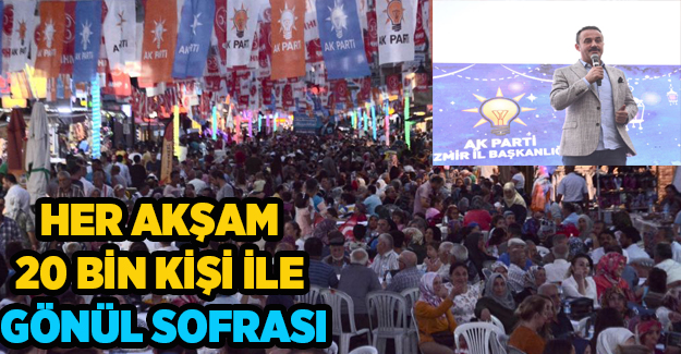 AK Parti İzmir İl Başkanlığının Gönül Sofrası iftarları Bayraklı ile devam etti. Sevgiyoluna kurulan Gönül Sofrasına her görüşten, her siyasi düşünceden binlerce insan oturdu. AK Parti Genel Başkan Yardımcısı Hamza Dağ, İl Başkanı Aydın Şengül, İlçe Başkanı Özgür Hızal ve çok sayıda milletvekili adayının katıldığı iftar, binlerce vatandaşın katılımı ile coşkulu geçti.