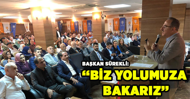 Başkan Sürekli, "Oradan buradan devşirerek yeni bir parti kurmaya çalışıyorlar. Biz buradayız ve hala iriyiz, hala diriyiz. Yolumuza bakarız... AK Parti, Türkiye'nin sigortasıdır, her linç girişiminin, ihanetin ve engelin üstesinden gelmeyi başarmış güçlü bir yapıdır. Aylardır alandayım, teşkilatımızın heyecanı doruğa ulaştı. Tam kadro ve omuz omuza kapı kapı çalışıyoruz. Gelişme ve yenilenmenin sonu yok. Yeni katılımlarımız da gücümüze güç katıyor. " diye konuştu.