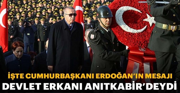 Gazi Mustafa Kemal Atatürk, vefatının 80'inci yılında tüm yurtta anıldı. Ankara Anıtkabir'de devlet erkanı Aslanlı Yol'daki yürüyüşünün ardından Atatürk'ün kabrine gelerek çelenk bırakıldı. Anıtkabir özel defterine yazdığı yazıyı okuyan Cumhurbaşkanı Erdoğan, saldırılara rağmen Türkiye'yi dünyanın en güçlü devletlerinden biri yapacaklarını söyledi."SALDIRILARA RAĞMEN EN GÜÇLÜ DEVLET OLACAK"Anıtkabir özel defterini imzalayan Cumhurbaşkanı Recep Tayyip Erdoğan, burada bir konuşma yaptı. Erdoğan, "Aziz Atatürk İstiklal Harbimizin Başkomutanı ve Cumhuriyetin kuruluşu olan şahsınızı vefatınızın 80'inci yıl dönümünde rahmetle anıyoruz. Türkiye Cumhuriyeti'ni dahili ve harici behahların saldırılarına rağmen dünyanın en güçlü ve müreffeh devletlerinden biri yapma yolunda kararlılıkla yürüyoruz. Cumhuriyetimizin 95'inci seneyi devriyesinde açılışını yaptığımız İstanbul Havalimanı tarihe nakşolmuştur. Ruhun şad olsun."