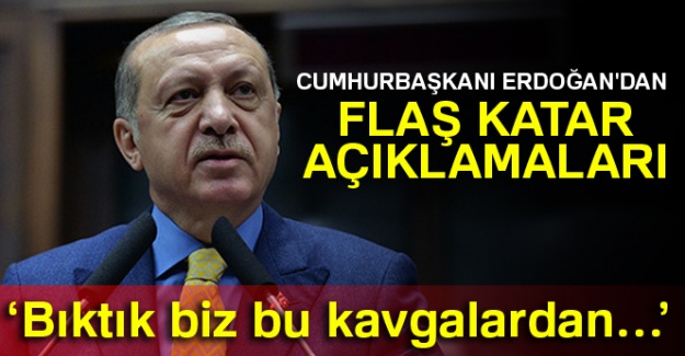 Cumhurbaşkanı Erdoğan, Körfez ülkelerinde yaşanan krize değinerek, "Bıktık biz bu kavgalardan, Müslümanın Müslümanı kırmasından bıktık. Katar'ın teröre destek verdiğine ben şahit olmadım. Biz Katar'a her türlü desteği vermeye devam edeceğiz." dedi.