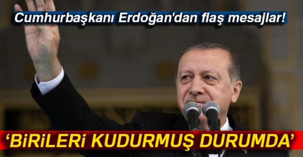 Cumhurbaşkanı Erdoğan, "Türk milletinin yeniden gücünün farkına varmış olmasına adeta birileri kudurmuş durumda. Türk milleti kardeşleri ile birlikte yeniden kurulan dünyada hakkettiği yeri almanın kararlılığı içindedir. Kadınıyla erkeğiyle bu kararlılığı ortaya koymamız lazım. 2023 hedeflerimize ulaşmamıza kim engel olabilir? Çalışıyoruz, koşuyoruz, milletçe koşuyoruz" dedi.Cumhurbaşkanı Erdoğan, toplu açılış töreni ve AK Parti Konya İl Başkanlığı Genişletilmiş İl Danışma Meclisi Toplantısına katılmak üzere Konya’ya geldi. Cumhurbaşkanı Erdoğan, Konya Havaalanından Cumhurbaşkanlığı otobüsü ile şehir merkezine geldi. İlk olarak Konya Valiliğine gelen Cumhurbaşkanı Erdoğan, buradan toplu açılış töreni için Mevlana Meydanı’na geçti. Törene, Başbakan Binali Yıldırım, Başbakan Yardımcısı Recep Akdağ, Kalkınma Bakanı Lütfi Elvan, Gençlik ve Spor Bakanı Osman Aşkın Bak, Eski Başbakan AK Parti Konya Milletvekili Ahmet Davutoğlu, Konya Valisi Yakup Canbolat, Büyükşehir belediye Başkanı Tahir Akyürek, milletvekilleri, belediye başkanları ve protokol mensupları katıldı.