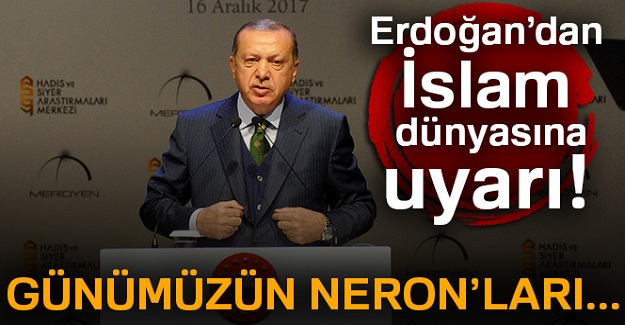 Cumhurbaşkanı Recep Tayyip Erdoğan, Meridyen Derneği tarafından Haliç Kongre Merkezi'nde düzenlenen 7. Hadis ve Siret Araştırmaları Ödül Töreni'ne katıldı. Törene Cumhurbaşkanı Erdoğan'ın yanı sıra Aile ve Sosyal Politikalar Bakanı Fatma Betül Sayan Kaya, Diyanet İşleri Başkanı Prof. Dr. Ali Erbaş, İBB Başkanı Mevlüt Uysal ve çok sayıda vatandaş katıldı.Cumhurbaşkanı Erdoğan, ehli hünerin kadrini kıymetini bilmenin de hüner olduğunu söyleyerek, "Peygamber Efendimiz sadece Kur'an-ı Kerim'in vahyine aracılık etmemiştir. Onu bilfiil yaşamış, hayatına tatbik etmiştir. Peygamberimizin hayatı Kur'an Kerim'in bir nevi tefsiridir. Sünnet ve siret olmadan İslamın yaşanması mümkün değildir. Müslümanların sünnetle olan bağı ne kadar güçlü ise dinleri de olan bağları da aynı şekilde kavi ve sağlamdır. Kim ne adına olursa olsun bu bağı yok sayan veya koparmaya çalışan her teşebbüs bizim nazarımızda gayri İslamidir. Peygamber Efendimizin sünnetini hedef almakla doğrudan Kur'an-ı Kerim'i hedef almak arasında fark yoktur. Sünnet-i seniyeyi tarihsel bir okumayla sadece kısıtlı bir döneme hapsetmek, Müslümanların hayatından Peygamber Efendimizi çıkarmayı amaçlayan kirli bir tezgahtır. Bu tezgah kimi zaman batılı ülkelerde olduğu gibi fikir özgürlüğü adına Peygamber Efendimizi tahkir eden karikatür şiirler, kitaplarla yapılıyor. Aynı oyun kimi zaman da uydurma hadislerin arkasına saklanarak sarenlenmeye çalışılıyor. İslam tarihini incelediğinizde bu tür gayretlerin farklı zamanlarda farklı şekillerde devreye konulduğuna şahit olursunuz" dedi."Son dönemde gerek ülkemizde gerek yurt dışında bu tür hadsizliklerin daha çok gündeme gelmesi asla tesadüf değildir" diyen Erdoğan, "İslam dini umut olmayı insanların tüm sıkıntılarına deva almaya devam ettikçe belli çevrelerce hedef olmaya devam edecektir. Bu saldırılara karşı uyanık olmak, hazırlık yapmak hepimizin görevidir. Siyer bizim Kur'an-ı Kerim'i anlama kılavuzumuz, hayat rehberimiz, referans kaynağıdır. Peygamberimiz efendimizin her dönemi bizim için örnektir. Peygamberimizin, bekarlığı, evliliği, tüccarlığı, yaşlılığı, dostluğu, savaşçılığıyla bizim rehberimizdir. Bu rehberden tam anlamıyla istifade etmek de ona başvurmaktan geçiyor" ifadelerini kaydetti."İslam dünyası bu derece bölünmüş olmasa hiçbir güç Müslümanların Harimi-i İsmet'ine el uzatamaz"