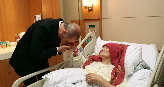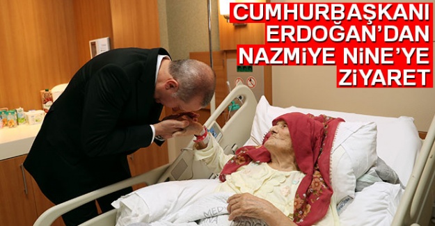 Cumhurbaşkanlığı kaynaklarından edinilen bilgiye göre, Cumhurbaşkanı Recep Tayyip Erdoğan, 100 yaşındaki Nazmiye Balcı'yı Beylikdüzü'nde tedavi gördüğü hastanede ziyaret etti. 100 yaşındaki Nazmiye Balcı'nın elini öpen Cumhurbaşkanı Erdoğan, şifa dileklerini iletti.