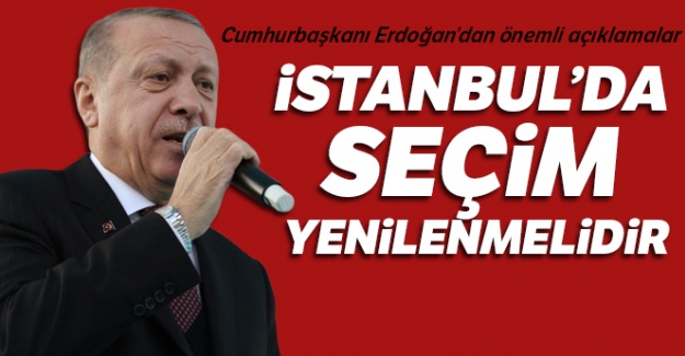 Bakırköy'de MÜSİAD 25. Olağan Genel Kurulu'nda İstanbul seçimlerine ilişkin konuşan Cumhurbaşkanı Recep Tayyip Erdoğan, "Yolsuzluk var. Gidelim millete milli irade nasıl bir karar veriyorsa başımız gözümüz üstüne deriz onu kabulleniriz" dedi. Anamuhalefet temsilcileri YSK'ya yönelik sözlerini hatırlatan Erdoğan, "YSK'nın başkanı bu tehdit karşısında neden acaba bir yazılı açıklama yapmadı?" ifadelerini kullandı.