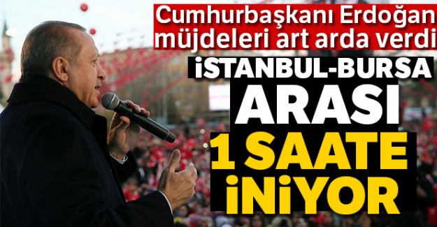 İŞTE CUMHURBAŞKANI ERDOĞAN'IN KONUŞMASINDAN SATIR BAŞLARI;Buradan Osmangazi, Nilüfer, Yıldırım, Orhangazi, ilçelerimize gönül dolusu selamlar gönderiyorum. Üretimle büyüyen bu ulu şehirde sizlerle birlikte olmanını mutluluğunu yaşıyorum. Bursa'nın çınarları sadece dibinde oturanlara değil, ülkemize ve milletimize de huzur verir. Bu topraklar ebedi yurttur. Bursa şehirlerden bir şehir değil adına nice şiirler yazılan bir şehirdir.50 KAT TRİLYON YATIRIM YAPTIKBen bu Bursa'ya aşık oldum. Tanıdım tanıyalı sevdim aşık oldum. Bursa ile birlikte yürüdük hep bu yolda... Biz Bursa'yı sadece sevmekle kalmadık. Aynı zamanda hizmet ettik. Son 16 yılda Bursa'ya ne kadar yatırım yaptık biliyor musunuz? Bunları bilmeyenlere anlatın... 50 kat trilyon yatırım yaptık. CHP bu rakamlardan anlamaz. Onlar sarece bol bol yalan söyler. Ama iyi ki yalan söylüyorlar. Biz de yargıya gönderiyoruz. Yargıdan 1,5 milyon geldi. Mehmet Özhaseki kardeşim parayı aldı, Kızılay Meydanı'nda döner dağıttı. Ben de bu parayı Mehmetçi Vakfı'na vereceğim.TERÖRLE MÜCADELEMİZDEN RAHATSIZLARBay Kemal bizim terör örgütüyle mücadelemizden rahatsız oluyor. Biz bunları niye anlatıyoruz hanımefendi... Bunlar oluyor ama biz Cudi'de, Gabar'da kullandığımız mermiler, bombalar... Bunlar niçin kullanılıyor. Ülkemizin mutluluğu, huzuru için. Beyefendilen rahatız oluyor. Bunların bir bayan milletvekili benim bayan polisimin elini ısırıyor. Bunlara bunun hesabını sormayacak mıyız? Soracağız. Öyle 25 kuruya simit yok. Bunların bedelini ödeyecekler.ULUDAĞ ALAN YÖNETİM BAŞKANLIĞI KURUYORUZBursa'ya kaçak göçek mimarı yakışmaz. Bursa'nın mimarisinde yatay mimarı var. Bir diğer müjdem Uludağ ile ilgili olacak. Yetki karmaşası yüzünden hizmetleri etkin götüremediğimiz bir bölgemiz burası. Daha verimli hale getirmek, daha verimli hizmek vermek için Uludağ Alan Yönetim Başkanılığı'nı kuruyoruz. Böylece Uludağ'ın 12 ay boyunca turizme kazandırılmasını sağlayacağız. Eski tabakhane bölgesini de termal turizm bölgesi yapıyoruz. Bursa'ya yılda bir milyar TL'lik katkıda bulunmasını bekliyoruz. İmar Barışı kapsamında Bursa'da 87 bin 936 müracaat yapıldı. Kentsel dönüşümdeki aksaklıkları çözeceğiz. Yaklaşık 20 bin vatandaşımızı etkileyen sıkıntıların hiçbir vatandaşımızı mağdur etmeden çözüme kavuşturacağız. İSTANBUL-BURSA ARASI 1 SAATE İNİYORİstanbul-İzmir Otoyolu aynı zamanda bir Bursa Otoyolu. İstanbul-Bursa arasını 1 saate düşürecek projeyi bu yıl içinde bitiriyoruz. Hızlı tren projesinin yapımı devam ediyor.Bursa'da 20 baraj ve 15 gölet inşaa ettik. 9 baraj ve 2 göletin ise yapım çalışmaları devam ediyor. Gemlik Körfezi'ndeki yerleşim yerlerine içme kullanma ve sanayii suyu temin edeceğiz.'BURSA'DA TEKNOSAB'I KURUYORUZ'Bursalı iş adamalarımıza 42 kat trilyon tutarında yatırım teşviki verdik. Biz üretiyoruz, çalışıyoruz.Milli teknolojimize uygun şekilde Bursa'da teknoloji sanayi bölgesi TEKNOSAB'ı kuruyoruz.
