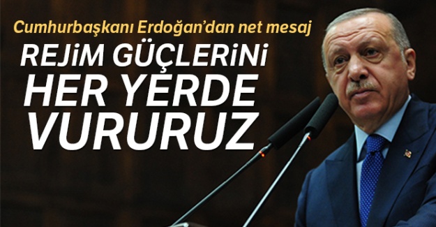 “Bunun için karada ve havada her ne gerekiyorsa çekinmeden, hiçbir oyalamaya meydan vermeden bunu yapacağız. Bitmez tükenmez toplantıların sonucunu beklemeden hemen şimdi ne yapmamız gerekiyorsa onun adımlarını atacağız. Bu amaçla son günlerde İdlib'teki askeri gücümüzü ciddi oranda tahkim ettik. Bölgedeki muhalif gruplardan başı bozuk hareket ederek rejime saldırı bahanesi verenlere de artık tavizsiz davranacağımızın mesajını ilettik. Geldiğimiz noktada artık kimsenin taşkınlığına, bağnazlığına, satılmışlığına göz yumacak değiliz.Ülkemizde birlikte mücadele eden Suriyeli kardeşlerimiz rejimi Soçi mutabakatı sınırlarının ötesine atmak için harekete geçtiler. İdlib'te sivil yerleşim yerlerini vuran hava araçları artık eskisi gibi hareket edemeyeceklerdir. Karada da rejim güçlerini aynı şekilde belirlediğimiz sınırların ötesine kadar kovalayacağız. Adana Mutabakatının gereği bu. Bu süreçte gözlem noktalarındaki veya diğer yerlerdeki askerlerimize en küçük bir zarar gelmesi halinde bugünden itibaren İdlib'le ve Soçi muhtırası sınırları ile bağlı kalmadan rejim güçlerini her yerde vuracağımızı buradan ilan ediyorum. Türkiye'yi hedef alan herkes bunun bedelini sadece saldırı alanında değil, her yerde ödeyeceğini bilmelidir. Harekat bölgelerimize yönelik tacizlere ilişkin karşılık özellikle hakkımızdır, hakkımızı da gerektiğinde bire on misliyle vereceğimiz, en küçük bir ihlali dahi affetmeyeceğimiz bir döneme girdik.”“Hesap vermemiz gerekiyorsa her platformda göğsümüzü gere gere veririz”“Şehitlerimizin bir tek damla kanını dahi teröristlerin ve rejimin tüm güçlerine değişmeyiz” diyen Erdoğan, “İdlib başta olmak üzere Suriye halkının hayatta kalma ve onurunu koruma mücadelesine destek vermek hem tarihi hem ahlaki hem insani sorumluluğumuzdur. Şayet bunun için hesap vermemiz gerekiyorsa her platformda göğsümüzü gere gere ve her türlü bedeli ödeyerek onu da yaparız. Mehmetçiklerin kanının döküldüğü bir yerde kendini ne kadar büyük görürse görsün hiç kimsenin güvende olamayacağını da burada açıkça söylüyorum. Bugün Suriye'de vermekten imtina edeceğimiz mücadeleyi yarın kendi topraklarımızda yürüteceğimizin bilinciyle tüm gücümüzü kullanacağız. Unutulmamalıdır ki Suriye halkının özgürlük mücadelesi aynı zamanda 83 milyon Türkiye Cumhuriyeti vatandaşının beka mücadelesidir.Bu mücadeleyi başarıya ulaştırırsak önümüzdeki yarım asırda, bir asırda Anadolu topraklarında huzurla yaşayabiliriz. Eğer Suriye terör örgütlerinin ve ipi başkalarının elinde kukla rejimlerin elinde kalırsa bizim de burada güvenliğimiz ve istikrarımız tehdit altına girer. Suriye güvende olacak ki biz de kendi evimizde rahat edebilelim. Türkiye'nin Suriye'de ne işi var diye soranlar aslına bakılırsa terör örgütlerinin ne için ülkemizde değil de hala Suriye'de faaliyet gösterdiğine hayıflananlardır. Ülkemizin ne terör örgütlerinin eylem sahası haline getirilmesine ne de kukla rejimlerin burnunun dibinde sürekli tehdit unsuru olarak kalmasına izin vereceğiz. Milletimden ülkemizin Suriye'deki mücadelesine bu gözle bakmasını ve desteklerini artırarak sürdürmesini bekliyorum. Bugün gösterdiğimiz çabalarla gelecekte evlatlarımıza 2053 ve 2071 vizyonlarını hayata geçirebilecekleri bir ülke bırakmayı hedefliyoruz. Rabbim bu yolda gayret gösteren kahraman ordumuz başta olmak üzere herkese güç versin, zafer nasip eylesin” ifadelerini kullandı.
