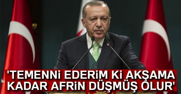 Cumhurbaşkanı Erdoğan: Temenni ederim ki Afrin akşama kadar düşmüş olur